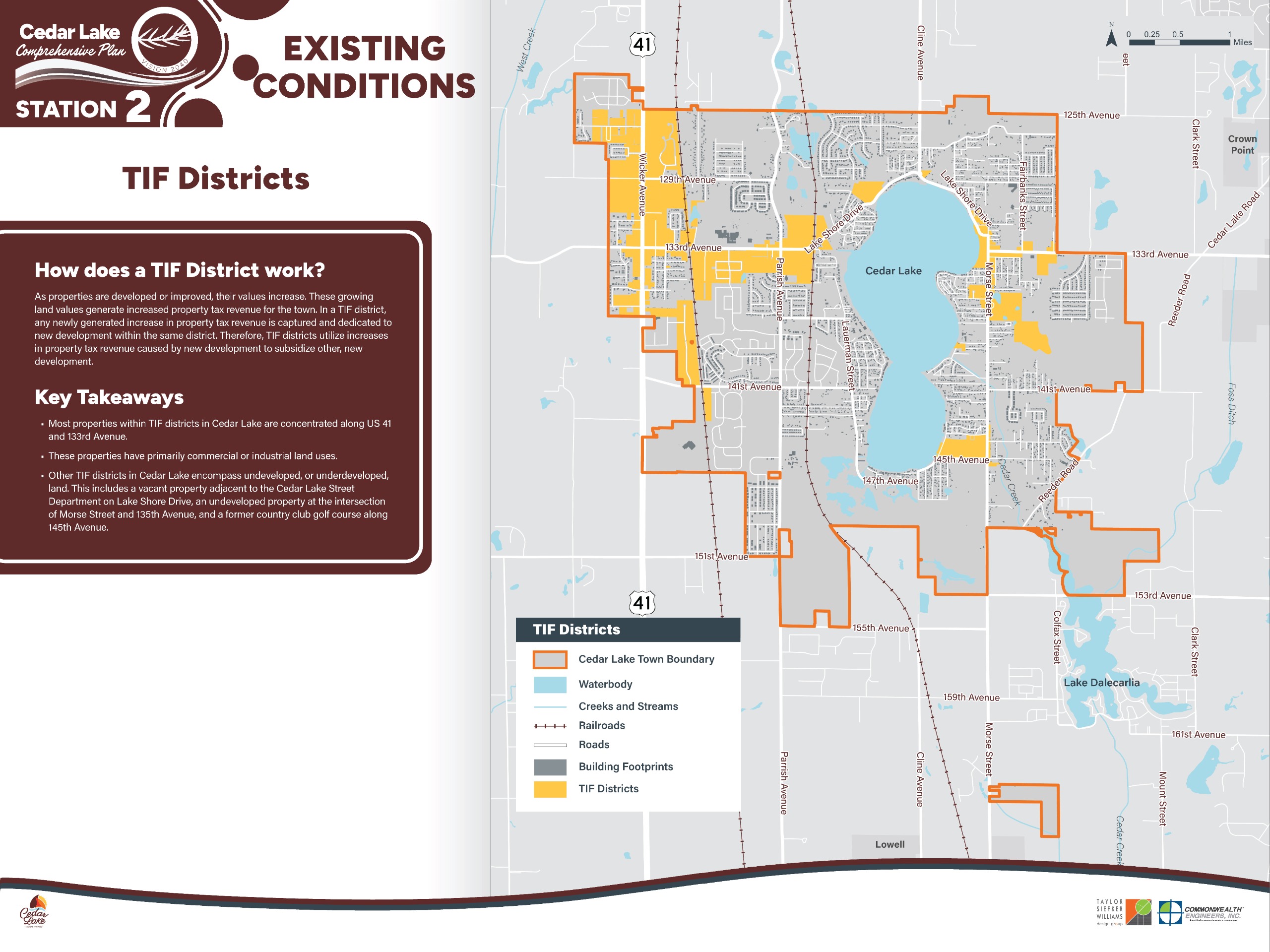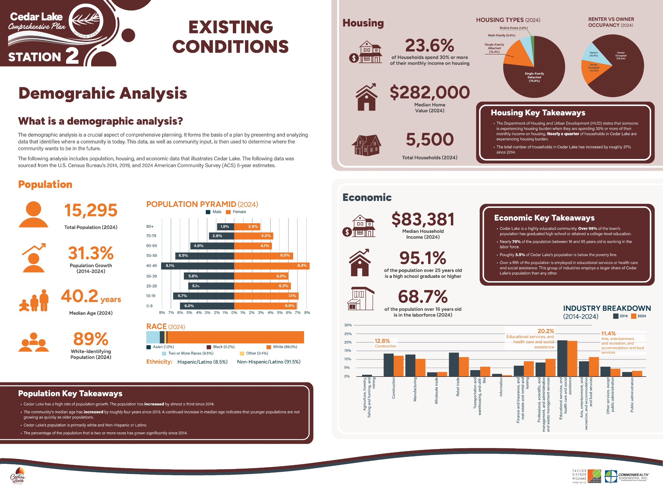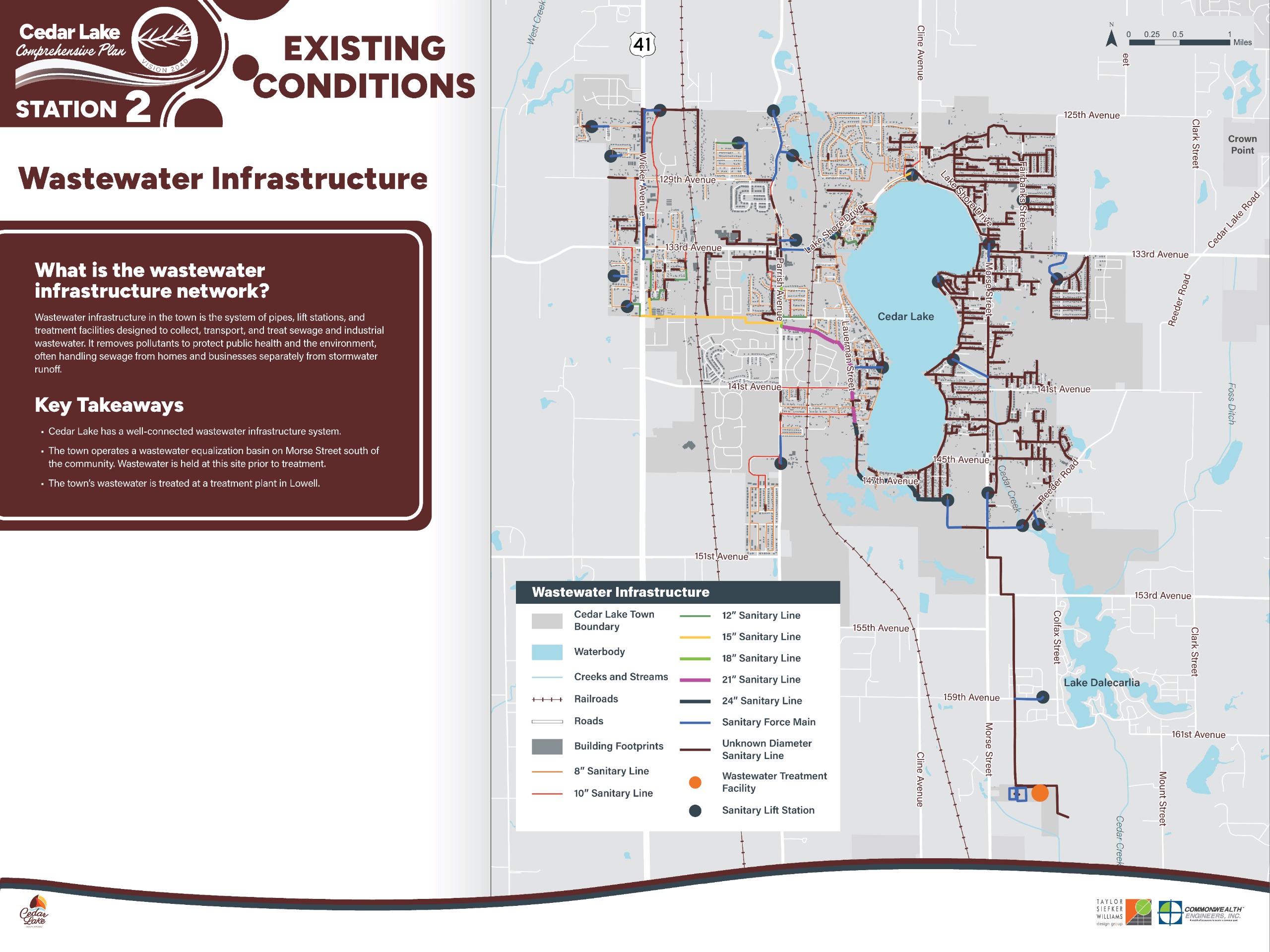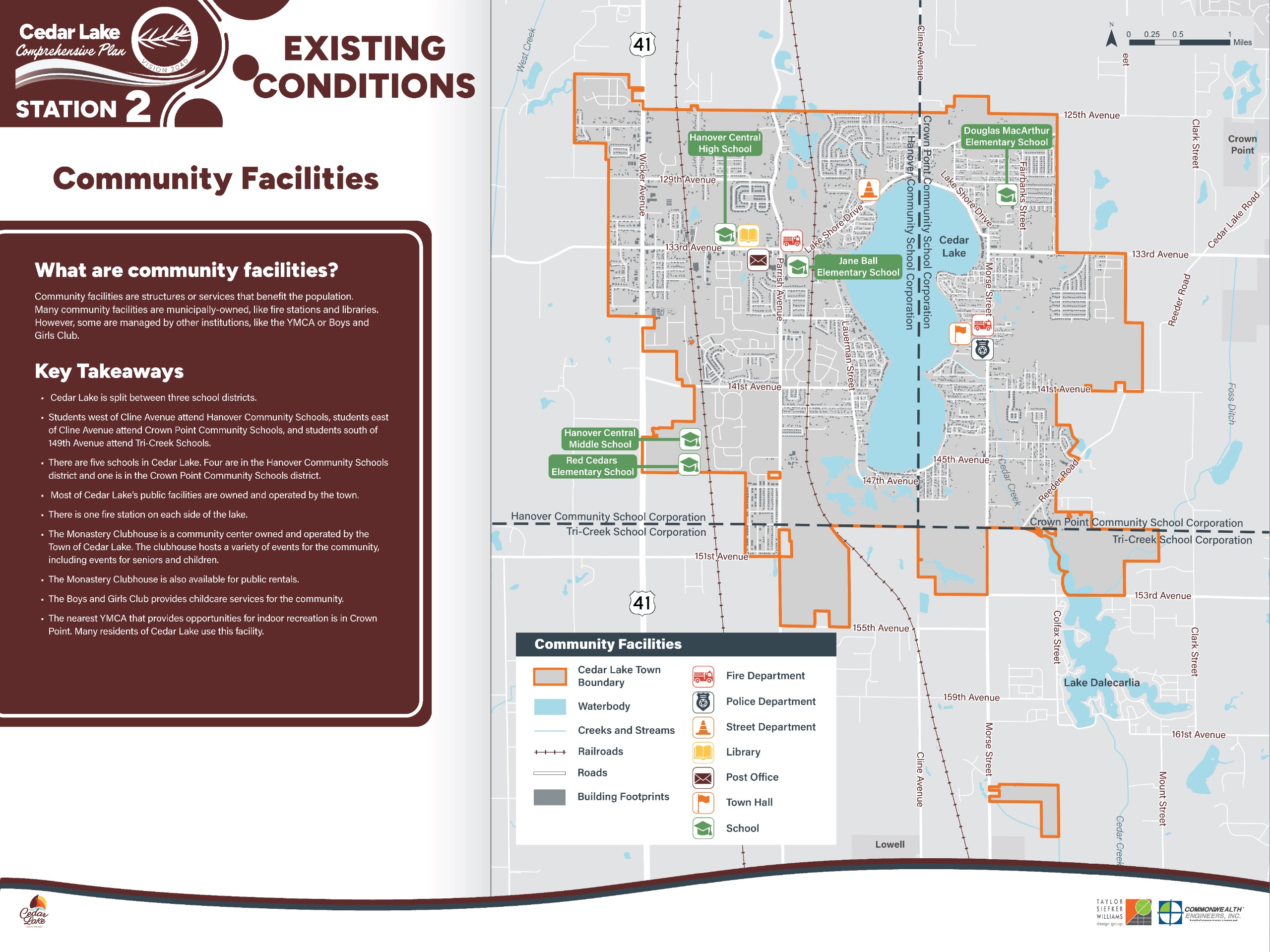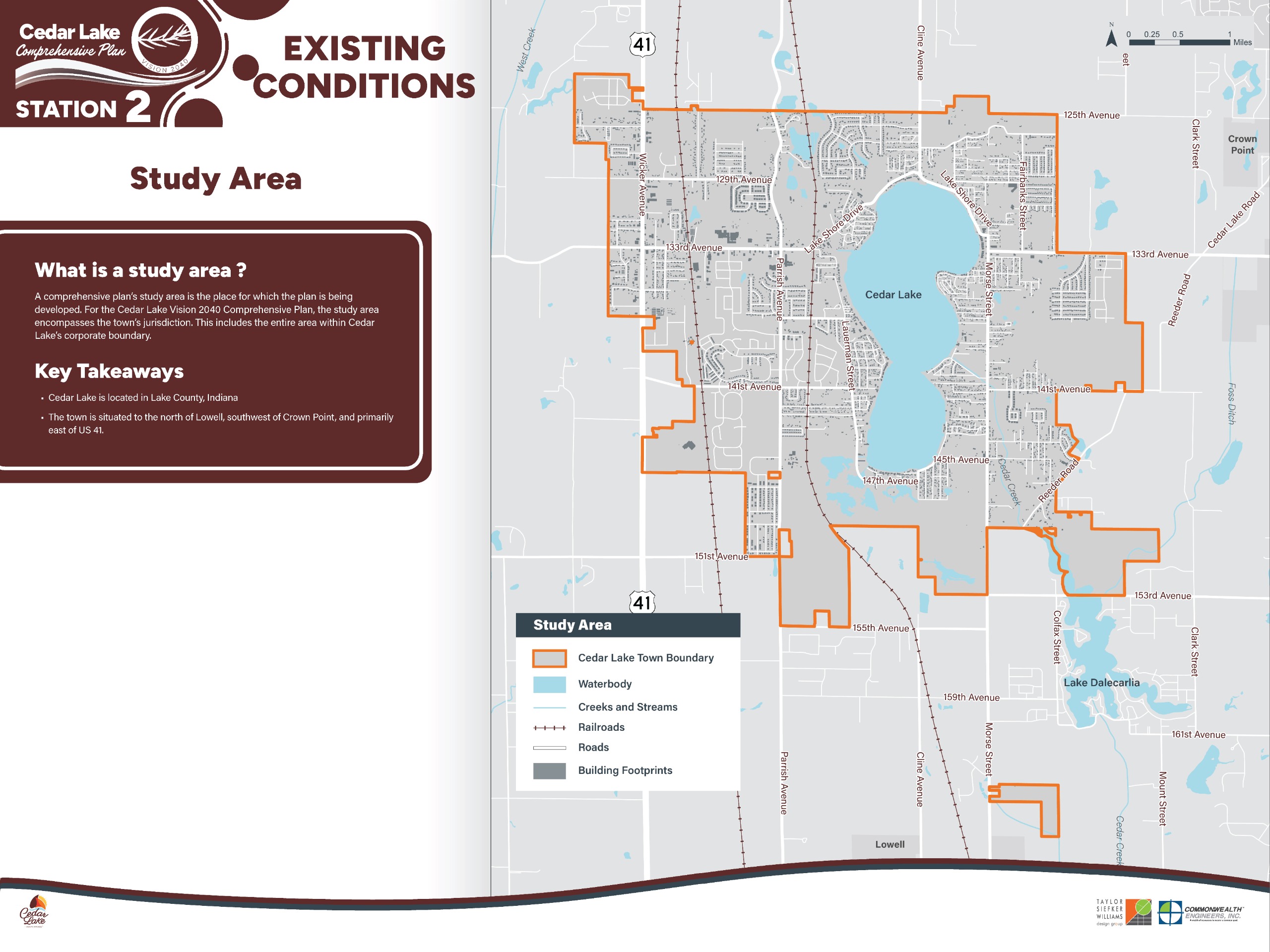 Two public open houses were facilitated at the Cedar Lake Municipal Complex (New Fire Station) on Wednesday, April 1, 2026. Attendees were provided a background of the comprehensive planning process and existing conditions summary. In addition, participants had an opportunity to provide feedback to help guide the visioning process. This feedback will be utilized as part of the foundation for plan priorities that will be developed in the second phase of work. Attendees were also encouraged to complete the online survey and share that survey information with others in the coming weeks.